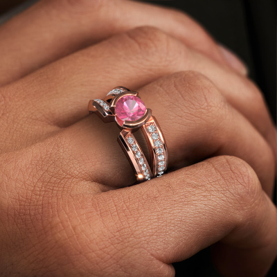 The heavy Rowan men's ring with round pink sapphire stone top, as shown above, is filled with tradition. Customary, the men's ring was passed down from father to son. Start your own tradition with this heavy rose gold men's ring. We are also more than happy to engrave your ring with a monogram or family crest. Please check our database for further inquiries and options. You can find the departments of our education centre at the bottom of this page. Start a new tradition with the contemporary rose gold Rowan men's ring. Our goldsmiths passionately create your customized men's ring to your liking with the utmost care. The rose gold men's ring, as shown here, can be customized using our online tool. Feel free to ask our jewel designers for assistance if you want changes made which are unavailable in our online tool. We are happy to answer your questions.Our talented designers add new designs to our online collection daily. Together they create a diverse collection of the finest jewellery. If you prefer to make a ring according your own design, please feel free to request a quote. We will make you an amazing offer, based on quality and price.By using our modern techniques, we can design and customize the finest quality jewels with the utmost care for you. Our rings are always priced 30 percent lower than other jewellers. We make rings to order, so we don't have to maintain a large stock. If you have a certain budget, we are more than happy to advice you accordingly.To make it easier for you, we offer a 30 day return policy. Check our terms and conditions.