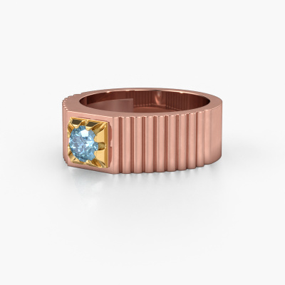 For the contemporary, stylish man that likes a bit of extravagance, we offer the heavy 14 Carat rose gold Elias pinky ring with blue lab grown diamond. Traditionally a pinky ring was worn as a sign of wealth. That is why a pink ring is perfectly suited for men who want to stand out. How do you like this modern rose gold men's ring? Simply customize this Elias men's ring, using our online tool. Subsequently, your personal best prices Elias men's ring will be made by hand by our goldsmiths. Precious metals and gemstones can be customized to your liking. Do you have specific preferences which are unavailable in our online tool? Please feel free to contact us. We will customize your personal modern men's ring to your liking.