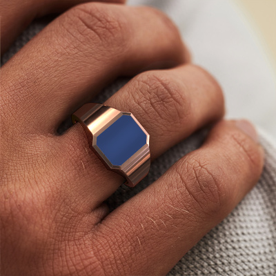 For the contemporary, stylish man that likes a bit of extravagance, we offer the flat 14 Carat rose gold Lars 1 pinky ring with lapis. Traditionally a pinky ring was worn as a sign of wealth. That is why a pink ring is perfectly suited for men who want to stand out. As soon as you finished designing your Lars 1 signet ring with our online tool, our goldsmiths will start their creative process of making your ring. This will be done with passion and care, according ancient crafting. On top of that, our jewels are made of eco-friendly materials. Simply customize online with our online tool, if you want any changes made. If you want specific changes made to your Lars 1 signet ring, that are unavailable in our online tool, please feel free to contact our expert designers.