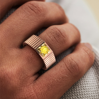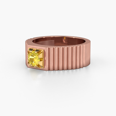 For the contemporary, stylish man that likes a bit of extravagance, we offer the heavy 14 Carat rose gold Elias pinky ring with yellow sapphire. Traditionally a pinky ring was worn as a sign of wealth. That is why a pink ring is perfectly suited for men who want to stand out. How do you like this modern rose gold men's ring? Simply customize this Elias men's ring, using our online tool. Subsequently, your personal best prices Elias men's ring will be made by hand by our goldsmiths. Precious metals and gemstones can be customized to your liking. Do you have specific preferences which are unavailable in our online tool? Please feel free to contact us. We will customize your personal modern men's ring to your liking.