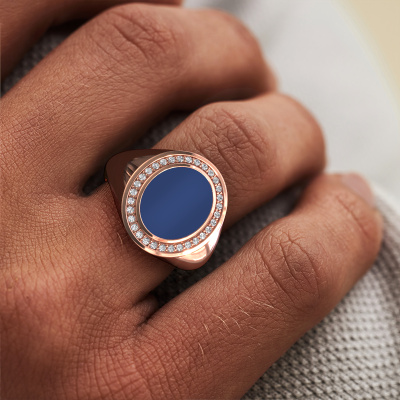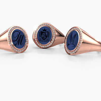 The oval Adam 2 signet ring with oval shape lapis stone top, as shown above, is filled with tradition. Customary, the signet ring was passed down from father to son. Start your own tradition with this oval rose gold signet ring. We are also more than happy to engrave your ring with a monogram or family crest. Please check our database for further inquiries and options. You can find the departments of our education centre at the bottom of this page. Start a new tradition with the exclusive rose gold Adam 2 signet ring. The diamonds Adam 2 signet ring, as shown here, can be customized to your liking. Our online tool offers many different options but please feel free to contact us if you want changes made to your Adam 2 signet ring, which are unavailable in our online tool.Our talented designers add new designs to our online collection daily. Together they create a diverse collection of the finest jewellery. If you prefer to make a ring according your own design, please feel free to request a quote. We will make you an amazing offer, based on quality and price.After receiving your order, our goldsmiths will start the creative process of making your Adam 2 ring. We don't keep stock. This is advantageous because these costs will not be passed on to you. Therefore, we can offer jewellery at exceptionally low prices.To make it easier for you, we offer a 30 day return policy. Check our terms and conditions.