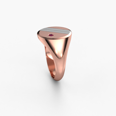 The flat Wesley 3 signet ring with round rhodolite stone top, as shown above, is filled with tradition. Customary, the signet ring was passed down from father to son. Start your own tradition with this flat rose gold signet ring. We are also more than happy to engrave your ring with a monogram or family crest. Please check our database for further inquiries and options. You can find the departments of our education centre at the bottom of this page. Start a new tradition with the traditional rose gold Wesley 3 signet ring. As soon as you finished designing your Wesley 3 signet ring with our online tool, our goldsmiths will start their creative process of making your ring. This will be done with passion and care, according ancient crafting. On top of that, our jewels are made of eco-friendly materials. Simply customize online with our online tool, if you want any changes made. If you want specific changes made to your Wesley 3 signet ring, that are unavailable in our online tool, please feel free to contact our expert designers.New jewellery designs are added to our online collection daily. Our team of passionate designers strive to create extraordinary and diverse designs. Have you seen a ring you like? Please feel free to contact us. Based on a good price/ quality ratio, we will make you an offer you can't refuse!Because we design and deliver our own rings, we can offer you a ring at a price you won't find anywhere else. A ring is made to order, which helps prevent excess supplies, so we can make you a great price offer. We understand it feels risky, buying your ring online, but we will gladly assist in the designing process, taking your budget into consideration.To make it easier for you, we offer a 30 day return policy. Check our terms and conditions.
