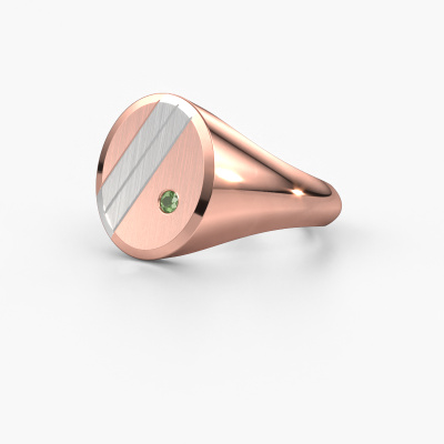 The flat Wesley 3 signet ring with round tourmaline green stone top, as shown above, is filled with tradition. Customary, the signet ring was passed down from father to son. Start your own tradition with this flat rose gold signet ring. We are also more than happy to engrave your ring with a monogram or family crest. Please check our database for further inquiries and options. You can find the departments of our education centre at the bottom of this page. Start a new tradition with the traditional rose gold Wesley 3 signet ring. As soon as you finished designing your Wesley 3 signet ring with our online tool, our goldsmiths will start their creative process of making your ring. This will be done with passion and care, according ancient crafting. On top of that, our jewels are made of eco-friendly materials. Simply customize online with our online tool, if you want any changes made. If you want specific changes made to your Wesley 3 signet ring, that are unavailable in our online tool, please feel free to contact our expert designers.New jewellery designs are added to our online collection daily. Our team of passionate designers strive to create extraordinary and diverse designs. Have you seen a ring you like? Please feel free to contact us. Based on a good price/ quality ratio, we will make you an offer you can't refuse!Because we design and deliver our own rings, we can offer you a ring at a price you won't find anywhere else. A ring is made to order, which helps prevent excess supplies, so we can make you a great price offer. We understand it feels risky, buying your ring online, but we will gladly assist in the designing process, taking your budget into consideration.To make it easier for you, we offer a 30 day return policy. Check our terms and conditions.