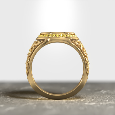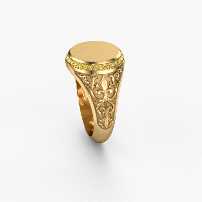 For any ring wearing individual who likes straight shapes, without too much embellishment, we offer the round gold Moor 1 signet ring. This flat surfaced ring stands out with its tight, stylish design and is perfect for the contemporary, confident man. Do you prefer engraving of your ring with a monogram or family seal? Please check our database at the bottom of the page for further inquiries and options. The best part of this special signet ring is that you can customize it to your own liking. Your style, your choice, your signet ring. On top of that, your fantasy gold signet ring will be made by hand with eco-friendly materials! Please feel free to easily customize the ring, using our online tool. Of course, you can always contact us. We will gladly help you compiling your fantasy signet ring. Is there a design you like, but you would like to customize it with a gemstone we do not offer on our website, then please contact us. We're happy to tell you about the possibilities.New jewellery designs are added to our online collection daily. Our team of passionate designers strive to create extraordinary and diverse designs. Have you seen a ring you like? Please feel free to contact us. Based on a good price/ quality ratio, we will make you an offer you can't refuse!After receiving your order, our goldsmiths will passionately start the creative process of making your ring in our own studio. Because we don't have a big stockpile, these costs will not be passed on to you. Our pricing is proof of that! We offer top quality jewels at lowest price, guaranteed.To make it easier for you, we offer a 30 day return policy. Check our terms and conditions.