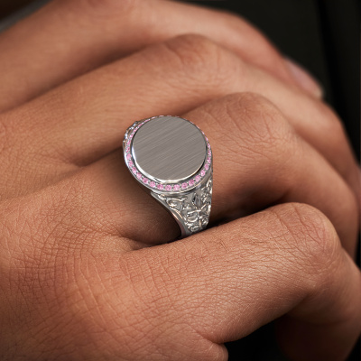 For any ring wearing individual who likes straight shapes, without too much embellishment, we offer the round platinum Moor 1 signet ring. This flat surfaced ring stands out with its tight, stylish design and is perfect for the contemporary, confident man. Do you prefer engraving of your ring with a monogram or family seal? Please check our database at the bottom of the page for further inquiries and options. The best part of this special signet ring is that you can customize it to your own liking. Your style, your choice, your signet ring. On top of that, your fantasy platinum signet ring will be made by hand with eco-friendly materials! Please feel free to easily customize the ring, using our online tool. Of course, you can always contact us. We will gladly help you compiling your fantasy signet ring. Is there a design you like, but you would like to customize it with a gemstone we do not offer on our website, then please contact us. We're happy to tell you about the possibilities.New jewellery designs are added to our online collection daily. Our team of passionate designers strive to create extraordinary and diverse designs. Have you seen a ring you like? Please feel free to contact us. Based on a good price/ quality ratio, we will make you an offer you can't refuse!After receiving your order, our goldsmiths will passionately start the creative process of making your ring in our own studio. Because we don't have a big stockpile, these costs will not be passed on to you. Our pricing is proof of that! We offer top quality jewels at lowest price, guaranteed.To make it easier for you, we offer a 30 day return policy. Check our terms and conditions.
