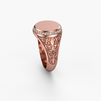 For any ring wearing individual who likes straight shapes, without too much embellishment, we offer the round rose gold Moor 1 signet ring. This flat surfaced ring stands out with its tight, stylish design and is perfect for the contemporary, confident man. Do you prefer engraving of your ring with a monogram or family seal? Please check our database at the bottom of the page for further inquiries and options. The best part of this special signet ring is that you can customize it to your own liking. Your style, your choice, your signet ring. On top of that, your fantasy rose gold signet ring will be made by hand with eco-friendly materials! Please feel free to easily customize the ring, using our online tool. Of course, you can always contact us. We will gladly help you compiling your fantasy signet ring. Is there a design you like, but you would like to customize it with a gemstone we do not offer on our website, then please contact us. We're happy to tell you about the possibilities.New jewellery designs are added to our online collection daily. Our team of passionate designers strive to create extraordinary and diverse designs. Have you seen a ring you like? Please feel free to contact us. Based on a good price/ quality ratio, we will make you an offer you can't refuse!After receiving your order, our goldsmiths will passionately start the creative process of making your ring in our own studio. Because we don't have a big stockpile, these costs will not be passed on to you. Our pricing is proof of that! We offer top quality jewels at lowest price, guaranteed.To make it easier for you, we offer a 30 day return policy. Check our terms and conditions.
