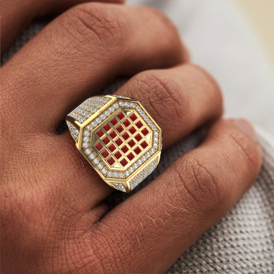 Are you looking for a exclusive gold men's ring that is slightly different? Then our heavy gold ruby set Bjorn men's ring is the perfect ring for you! This ring, as shown here, is made of gold but feel free to customize to your liking. Show them what you are all about with this gold ruby Bjorn men's ring, a ring for ambitious men. The special Bjorn men's ring, as shown here, can be customized to your liking. Our online tool offers many different options but please feel free to contact us if you want changes made to your Bjorn men's ring, which are unavailable in our online tool.