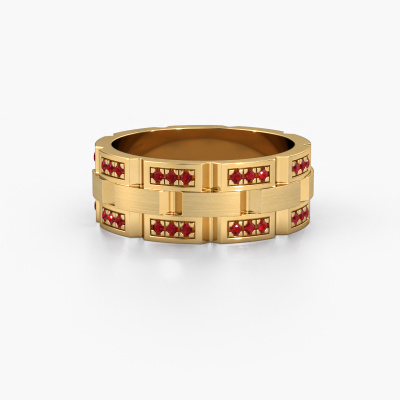Are you looking for a traditional gold men's ring that is slightly different? Then our solid gold ruby set Ricardo 4 men's ring is the perfect ring for you! This ring, as shown here, is made of gold but feel free to customize to your liking. Show them what you are all about with this gold ruby Ricardo 4 men's ring, a ring for ambitious men. The edgy Ricardo 4 men's ring, as shown here, can be customized to your liking. Our online tool offers many different options but please feel free to contact us if you want changes made to your Ricardo 4 men's ring, which are unavailable in our online tool.Our talented designers add new designs to our online collection daily. Together they create a diverse collection of the finest jewellery. If you prefer to make a ring according your own design, please feel free to request a quote. We will make you an amazing offer, based on quality and price.After receiving your order, our goldsmiths will passionately start the creative process of making your ring in our own studio. Because we don't have a big stockpile, these costs will not be passed on to you. Our pricing is proof of that! We offer top quality jewels at lowest price, guaranteed.To make it easier for you, we offer a 30 day return policy. Check our terms and conditions.