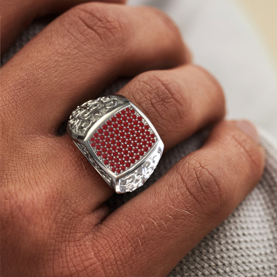 Are you looking for a Celtic platinum men's ring that is slightly different? Then our heavy platinum ruby set Danny men's ring is the perfect ring for you! This ring, as shown here, is made of platinum but feel free to customize to your liking. Show them what you are all about with this platinum ruby Danny men's ring, a ring for ambitious men. How do you like this Celtic platinum men's ring? Simply customize this Danny men's ring, using our online tool. Subsequently, your personal special Danny men's ring will be made by hand by our goldsmiths. Precious metals and gemstones can be customized to your liking. Do you have specific preferences which are unavailable in our online tool? Please feel free to contact us. We will customize your personal Celtic men's ring to your liking.Our team of talented, passionate designers add new ring designs to our online collection daily. Our objective in doing so, is to be able to offer you a wide variety of jewels. Please feel free to request a quote if you have specific wishes for your ring. We guarantee to make you an offer you can't refuse.By using a combination of the latest modern techniques, combined with ancient crafting, we can make all our rings in our own studio. Each jewel is made to order. This is advantageous because we can offer you a price you won't find anywhere else.To make it easier for you, we offer a 30 day return policy. Check our terms and conditions.