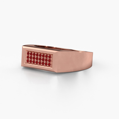 Are you looking for a modern rose gold men's ring that is slightly different? Then our rectangular rose gold ruby set Dree 6 men's ring is the perfect ring for you! This ring, as shown here, is made of rose gold but feel free to customize to your liking. Show them what you are all about with this rose gold ruby Dree 6 men's ring, a ring for ambitious men. As soon as you finished designing your Dree 6 men's ring with our online tool, our goldsmiths will start their creative process of making your ring. This will be done with passion and care, according ancient crafting. On top of that, our jewels are made of eco-friendly materials. Simply customize online with our online tool, if you want any changes made. If you want specific changes made to your Dree 6 men's ring, that are unavailable in our online tool, please feel free to contact our expert designers.