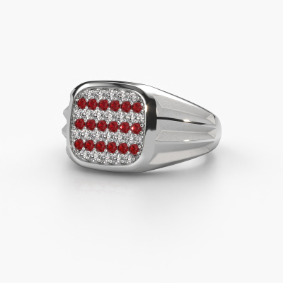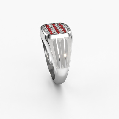 Are you looking for a exclusive white gold pinky ring that is slightly different? Then our square white gold ruby set Robbert pinky ring is the perfect ring for you! This ring, as shown here, is made of white gold but feel free to customize to your liking. Show them what you are all about with this white gold ruby Robbert pinky ring, a ring for ambitious men. How do you like this exclusive white gold men's ring? Simply customize this Robbert men's ring, using our online tool. Subsequently, your personal elegant Robbert men's ring will be made by hand by our goldsmiths. Precious metals and gemstones can be customized to your liking. Do you have specific preferences which are unavailable in our online tool? Please feel free to contact us. We will customize your personal exclusive men's ring to your liking.