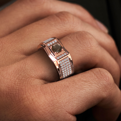 Are you looking for a modern rose gold men's ring that is slightly different? Then our flat rose gold smokey quartz set Marcel men's ring is the perfect ring for you! This ring, as shown here, is made of rose gold but feel free to customize to your liking. Show them what you are all about with this rose gold smokey quartz Marcel men's ring, a ring for ambitious men. Our goldsmiths passionately create your customized men's ring to your liking with the utmost care. The rose gold men's ring, as shown here, can be customized using our online tool. Feel free to ask our jewel designers for assistance if you want changes made which are unavailable in our online tool. We are happy to answer your questions.
