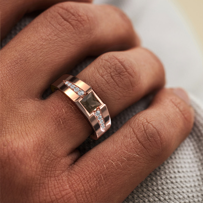 Are you looking for a modern rose gold pinky ring that is slightly different? Then our square rose gold smokey quartz set Simon pinky ring is the perfect ring for you! This ring, as shown here, is made of rose gold but feel free to customize to your liking. Show them what you are all about with this rose gold smokey quartz Simon pinky ring, a ring for ambitious men. How do you like this modern rose gold men's ring? Simply customize this Simon men's ring, using our online tool. Subsequently, your personal luxury Simon men's ring will be made by hand by our goldsmiths. Precious metals and gemstones can be customized to your liking. Do you have specific preferences which are unavailable in our online tool? Please feel free to contact us. We will customize your personal modern men's ring to your liking.Our talented designers add new designs to our online collection daily. Together they create a diverse collection of the finest jewellery. If you prefer to make a ring according your own design, please feel free to request a quote. We will make you an amazing offer, based on quality and price.By using a combination of the latest modern techniques, combined with ancient crafting, we can make all our rings in our own studio. Each jewel is made to order. This is advantageous because we can offer you a price you won't find anywhere else.To make it easier for you, we offer a 30 day return policy. Check our terms and conditions.
