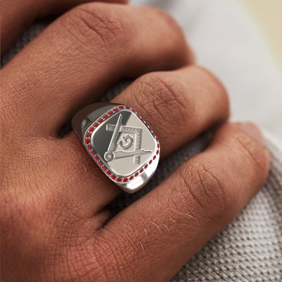 Dress to impress with this square Johan 1 men's ring, because with the right ring you make a strong personal statement. This Johan 1 masonic men's ring is shown in platinum. If this doesn't suit your style, feel free to customize the precious metal to your liking. After all, you want a men's ring that matches your style. A ring that truly suits you. One saying: This is who I am!The best part of this masonic signet ring is that you can customize it to your own liking. Your style, your choice, your signet ring. On top of that, your traditional platinum signet ring will be made by hand with eco-friendly materials! Please feel free to easily customize the ring, using our online tool. Of course, you can always contact us. We will gladly help you compiling your traditional signet ring. Is there a design you like, but you would like to customize it with a gemstone we do not offer on our website, then please contact us. We're happy to tell you about the possibilities.New jewellery designs are added to our online collection daily. Our team of passionate designers strive to create extraordinary and diverse designs. Have you seen a ring you like? Please feel free to contact us. Based on a good price/ quality ratio, we will make you an offer you can't refuse!Because we design and deliver our own rings, we can offer you a ring at a price you won't find anywhere else. A ring is made to order, which helps prevent excess supplies, so we can make you a great price offer. We understand it feels risky, buying your ring online, but we will gladly assist in the designing process, taking your budget into consideration.To make it easier for you, we offer a 30 day return policy. Check our terms and conditions.