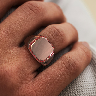Dress to impress with this square Jesse 1 men's ring, because with the right ring you make a strong personal statement. This Jesse 1 royal men's ring is shown in 14 Carat rose gold. If this doesn't suit your style, feel free to customize the precious metal to your liking. After all, you want a men's ring that matches your style. A ring that truly suits you. One saying: This is who I am!The royal Jesse 1 signet ring, as shown here, can be customized to your liking. Our online tool offers many different options but please feel free to contact us if you want changes made to your Jesse 1 signet ring, which are unavailable in our online tool.New jewellery designs are added to our online collection daily. Our team of passionate designers strive to create extraordinary and diverse designs. Have you seen a ring you like? Please feel free to contact us. Based on a good price/ quality ratio, we will make you an offer you can't refuse!Are you on a budget? Please feel free to contact us, so we can go discuss your options. We offer our rings at guaranteed best price, because we make them to order. You won't find such a price anywhere else!To make it easier for you, we offer a 30 day return policy. Check our terms and conditions.