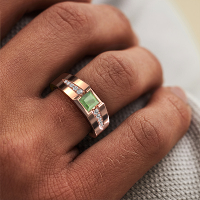 Are you looking for a modern rose gold pinky ring that is slightly different? Then our square rose gold tourmaline green set Simon pinky ring is the perfect ring for you! This ring, as shown here, is made of rose gold but feel free to customize to your liking. Show them what you are all about with this rose gold tourmaline green Simon pinky ring, a ring for ambitious men. How do you like this modern rose gold men's ring? Simply customize this Simon men's ring, using our online tool. Subsequently, your personal luxury Simon men's ring will be made by hand by our goldsmiths. Precious metals and gemstones can be customized to your liking. Do you have specific preferences which are unavailable in our online tool? Please feel free to contact us. We will customize your personal modern men's ring to your liking.Our talented designers add new designs to our online collection daily. Together they create a diverse collection of the finest jewellery. If you prefer to make a ring according your own design, please feel free to request a quote. We will make you an amazing offer, based on quality and price.By using a combination of the latest modern techniques, combined with ancient crafting, we can make all our rings in our own studio. Each jewel is made to order. This is advantageous because we can offer you a price you won't find anywhere else.To make it easier for you, we offer a 30 day return policy. Check our terms and conditions.