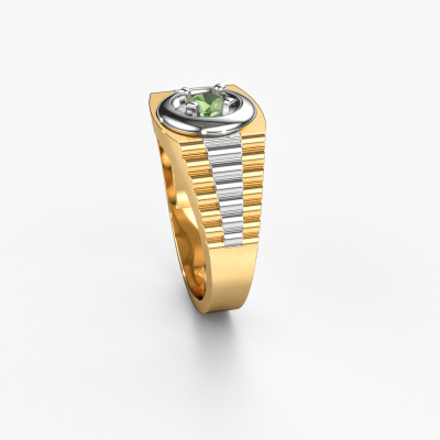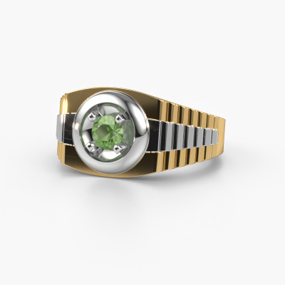 Everyone knows the design of this well-known watch brand. With two colours of gold links, this solid 14 Carat gold Edward men's ring, is perfectly suited for trendy, successful men. A man who wants to dress to impress with a striking men's ring with 4.7 mm tourmaline green. Show them what you are made of!How do you like this exclusive gold men's ring? Simply customize this Edward men's ring, using our online tool. Subsequently, your personal daring Edward men's ring will be made by hand by our goldsmiths. Precious metals and gemstones can be customized to your liking. Do you have specific preferences which are unavailable in our online tool? Please feel free to contact us. We will customize your personal exclusive men's ring to your liking.Our talented designers add new designs to our online collection daily. Together they create a diverse collection of the finest jewellery. If you prefer to make a ring according your own design, please feel free to request a quote. We will make you an amazing offer, based on quality and price.Because we design and deliver our own rings, we can offer you a ring at a price you won't find anywhere else. A ring is made to order, which helps prevent excess supplies, so we can make you a great price offer. We understand it feels risky, buying your ring online, but we will gladly assist in the designing process, taking your budget into consideration.To make it easier for you, we offer a 30 day return policy. Check our terms and conditions.