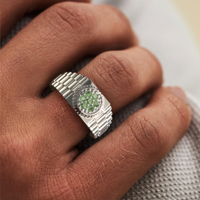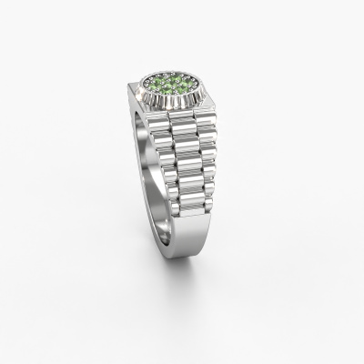 Everyone knows the design of this well-known watch brand. With two colours of platinum links, this solid platinum Nout men's ring, is perfectly suited for trendy, successful men. A man who wants to dress to impress with a striking men's ring with 2 mm tourmaline green. Show them what you are made of!Our goldsmiths passionately create your customized men's ring to your liking with the utmost care. The platinum men's ring, as shown here, can be customized using our online tool. Feel free to ask our jewel designers for assistance if you want changes made which are unavailable in our online tool. We are happy to answer your questions.New jewellery designs are added to our online collection daily. Our team of passionate designers strive to create extraordinary and diverse designs. Have you seen a ring you like? Please feel free to contact us. Based on a good price/ quality ratio, we will make you an offer you can't refuse!By using our modern techniques, we can design and customize the finest quality jewels with the utmost care for you. Our rings are always priced 30 percent lower than other jewellers. We make rings to order, so we don't have to maintain a large stock. If you have a certain budget, we are more than happy to advice you accordingly.To make it easier for you, we offer a 30 day return policy. Check our terms and conditions.