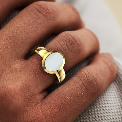 The oval Oscar 1 pinky ring with oval shape green sardonyx stone top, as shown above, is filled with tradition. Customary, the pinky ring was passed down from father to son. Start your own tradition with this oval gold pinky ring. We are also more than happy to engrave your ring with a monogram or family crest. Please check our database for further inquiries and options. You can find the departments of our education centre at the bottom of this page. Start a new tradition with the trendy gold Oscar 1 pinky ring. The best part of this elegant signet ring is that you can customize it to your own liking. Your style, your choice, your signet ring. On top of that, your trendy gold signet ring will be made by hand with eco-friendly materials! Please feel free to easily customize the ring, using our online tool. Of course, you can always contact us. We will gladly help you compiling your trendy signet ring. Is there a design you like, but you would like to customize it with a gemstone we do not offer on our website, then please contact us. We're happy to tell you about the possibilities.