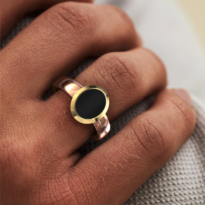 The oval Oscar 1 pinky ring with oval shape onyx stone top, as shown above, is filled with tradition. Customary, the pinky ring was passed down from father to son. Start your own tradition with this oval rose gold pinky ring. We are also more than happy to engrave your ring with a monogram or family crest. Please check our database for further inquiries and options. You can find the departments of our education centre at the bottom of this page. Start a new tradition with the trendy rose gold Oscar 1 pinky ring. The best part of this elegant signet ring is that you can customize it to your own liking. Your style, your choice, your signet ring. On top of that, your trendy rose gold signet ring will be made by hand with eco-friendly materials! Please feel free to easily customize the ring, using our online tool. Of course, you can always contact us. We will gladly help you compiling your trendy signet ring. Is there a design you like, but you would like to customize it with a gemstone we do not offer on our website, then please contact us. We're happy to tell you about the possibilities.
