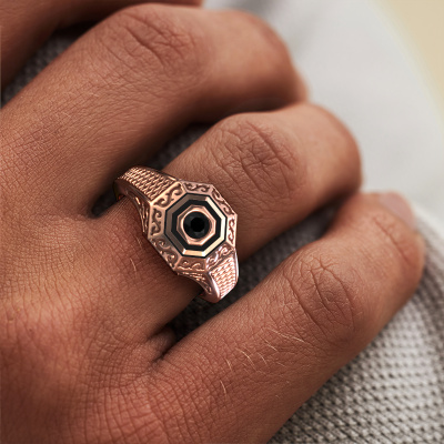 Dress to impress with this solid Dion men's ring, because with the right ring you make a strong personal statement. This Dion special men's ring is shown in 14 Carat rose gold. If this doesn't suit your style, feel free to customize the precious metal to your liking. After all, you want a men's ring that matches your style. A ring that truly suits you. One saying: This is who I am!How do you like this vintage rose gold men's ring? Simply customize this Dion men's ring, using our online tool. Subsequently, your personal special Dion men's ring will be made by hand by our goldsmiths. Precious metals and gemstones can be customized to your liking. Do you have specific preferences which are unavailable in our online tool? Please feel free to contact us. We will customize your personal vintage men's ring to your liking.Our team of talented, passionate designers add new ring designs to our online collection daily. Our objective in doing so, is to be able to offer you a wide variety of jewels. Please feel free to request a quote if you have specific wishes for your ring. We guarantee to make you an offer you can't refuse.By using our modern techniques, we can design and customize the finest quality jewels with the utmost care for you. Our rings are always priced 30 percent lower than other jewellers. We make rings to order, so we don't have to maintain a large stock. If you have a certain budget, we are more than happy to advice you accordingly.To make it easier for you, we offer a 30 day return policy. Check our terms and conditions.