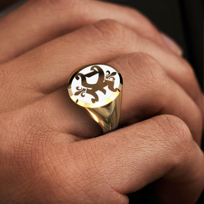 Would you like a nicely shaped gold monogram ring to stand out from the crowd? The art of creating an enamel design on monogram ring is still quite rare. It is becoming more popular though. For this solid gold Xandro Emaille monogram ring, there is a wide variety of different colours to embellish your ring. Therefore, this gold monogram ring is made according to ancient crafting, combined with the latest modern techniques. As soon as you finished designing your Xandro Emaille signet ring with our online tool, our goldsmiths will start their creative process of making your ring. This will be done with passion and care, according ancient crafting. On top of that, our jewels are made of eco-friendly materials. Simply customize online with our online tool, if you want any changes made. If you want specific changes made to your Xandro Emaille signet ring, that are unavailable in our online tool, please feel free to contact our expert designers.Our talented designers add new designs to our online collection daily. Together they create a diverse collection of the finest jewellery. If you prefer to make a ring according your own design, please feel free to request a quote. We will make you an amazing offer, based on quality and price.After receiving your order, our goldsmiths will passionately start the creative process of making your ring in our own studio. Because we don't have a big stockpile, these costs will not be passed on to you. Our pricing is proof of that! We offer top quality jewels at lowest price, guaranteed.To make it easier for you, we offer a 30 day return policy. Check our terms and conditions.