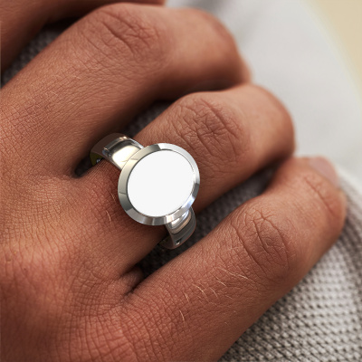 The solid Oscar 3 signet ring with oval shape white enamel stone top, as shown above, is filled with tradition. Customary, the signet ring was passed down from father to son. Start your own tradition with this solid platinum signet ring. We are also more than happy to engrave your ring with a monogram or family crest. Please check our database for further inquiries and options. You can find the departments of our education centre at the bottom of this page. Start a new tradition with the contemporary platinum Oscar 3 signet ring. How do you like this contemporary platinum signet ring? Simply customize this Oscar 3 signet ring, using our online tool. Subsequently, your personal royal Oscar 3 signet ring will be made by hand by our goldsmiths. Precious metals and gemstones can be customized to your liking. Do you have specific preferences which are unavailable in our online tool? Please feel free to contact us. We will customize your personal contemporary signet ring to your liking.Our team of talented, passionate designers add new ring designs to our online collection daily. Our objective in doing so, is to be able to offer you a wide variety of jewels. Please feel free to request a quote if you have specific wishes for your ring. We guarantee to make you an offer you can't refuse.By using a combination of the latest modern techniques, combined with ancient crafting, we can make all our rings in our own studio. Each jewel is made to order. This is advantageous because we can offer you a price you won't find anywhere else.To make it easier for you, we offer a 30 day return policy. Check our terms and conditions.