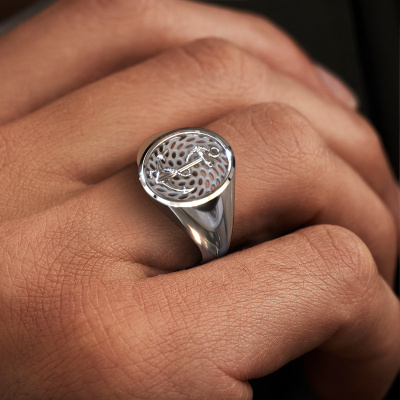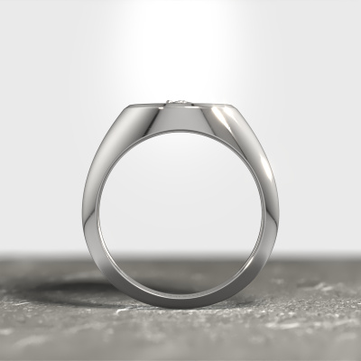 Dress to impress with this oval Roger men's ring, because with the right ring you make a strong personal statement. This Roger men's ring is shown in 14 Carat white gold. If this doesn't suit your style, feel free to customize the precious metal to your liking. After all, you want a symbolic men's ring that matches your style. A ring that truly suits you. One saying: This is who I am!The symbolic Roger signet ring, as shown here, can be customized to your liking. Our online tool offers many different options but please feel free to contact us if you want changes made to your Roger signet ring, which are unavailable in our online tool.Our team of talented, passionate designers add new ring designs to our online collection daily. Our objective in doing so, is to be able to offer you a wide variety of jewels. Please feel free to request a quote if you have specific wishes for your ring. We guarantee to make you an offer you can't refuse.By using our modern techniques, we can design and customize the finest quality jewels with the utmost care for you. Our rings are always priced 30 percent lower than other jewellers. We make rings to order, so we don't have to maintain a large stock. If you have a certain budget, we are more than happy to advice you accordingly.To make it easier for you, we offer a 30 day return policy. Check our terms and conditions.