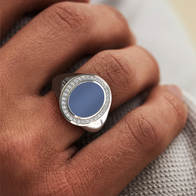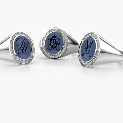 The oval Adam 2 signet ring with oval shape blue sardonyx stone top, as shown above, is filled with tradition. Customary, the signet ring was passed down from father to son. Start your own tradition with this oval white gold signet ring. We are also more than happy to engrave your ring with a monogram or family crest. Please check our database for further inquiries and options. You can find the departments of our education centre at the bottom of this page. Start a new tradition with the exclusive white gold Adam 2 signet ring. The diamonds Adam 2 signet ring, as shown here, can be customized to your liking. Our online tool offers many different options but please feel free to contact us if you want changes made to your Adam 2 signet ring, which are unavailable in our online tool.Our talented designers add new designs to our online collection daily. Together they create a diverse collection of the finest jewellery. If you prefer to make a ring according your own design, please feel free to request a quote. We will make you an amazing offer, based on quality and price.After receiving your order, our goldsmiths will start the creative process of making your Adam 2 ring. We don't keep stock. This is advantageous because these costs will not be passed on to you. Therefore, we can offer jewellery at exceptionally low prices.To make it easier for you, we offer a 30 day return policy. Check our terms and conditions.
