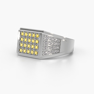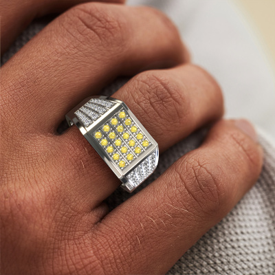 Are you looking for a modern platinum men's ring that is slightly different? Then our rectangular platinum yellow sapphire set Tim men's ring is the perfect ring for you! This ring, as shown here, is made of platinum but feel free to customize to your liking. Show them what you are all about with this platinum yellow sapphire Tim men's ring, a ring for ambitious men. The special Tim men's ring, as shown here, can be customized to your liking. Our online tool offers many different options but please feel free to contact us if you want changes made to your Tim men's ring, which are unavailable in our online tool.New jewellery designs are added to our online collection daily. Our team of passionate designers strive to create extraordinary and diverse designs. Have you seen a ring you like? Please feel free to contact us. Based on a good price/ quality ratio, we will make you an offer you can't refuse!By using a combination of the latest modern techniques, combined with ancient crafting, we can make all our rings in our own studio. Each jewel is made to order. This is advantageous because we can offer you a price you won't find anywhere else.To make it easier for you, we offer a 30 day return policy. Check our terms and conditions.