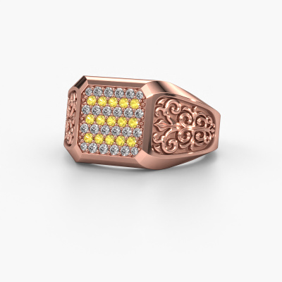 Are you looking for a design rose gold men's ring that is slightly different? Then our flat rose gold yellow sapphire set Amir men's ring is the perfect ring for you! This ring, as shown here, is made of rose gold but feel free to customize to your liking. Show them what you are all about with this rose gold yellow sapphire Amir men's ring, a ring for ambitious men. Our goldsmiths passionately create your customized men's ring to your liking with the utmost care. The rose gold men's ring, as shown here, can be customized using our online tool. Feel free to ask our jewel designers for assistance if you want changes made which are unavailable in our online tool. We are happy to answer your questions.Our team of talented, passionate designers add new ring designs to our online collection daily. Our objective in doing so, is to be able to offer you a wide variety of jewels. Please feel free to request a quote if you have specific wishes for your ring. We guarantee to make you an offer you can't refuse.Because we design and deliver our own rings, we can offer you a ring at a price you won't find anywhere else. A ring is made to order, which helps prevent excess supplies, so we can make you a great price offer. We understand it feels risky, buying your ring online, but we will gladly assist in the designing process, taking your budget into consideration.To make it easier for you, we offer a 30 day return policy. Check our terms and conditions.