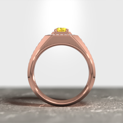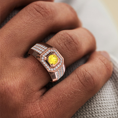 Are you looking for a modern rose gold men's ring that is slightly different? Then our wide rose gold yellow sapphire set Pavan men's ring is the perfect ring for you! This ring, as shown here, is made of rose gold but feel free to customize to your liking. Show them what you are all about with this rose gold yellow sapphire Pavan men's ring, a ring for ambitious men. The royal Pavan men's ring, as shown here, can be customized to your liking. Our online tool offers many different options but please feel free to contact us if you want changes made to your Pavan men's ring, which are unavailable in our online tool.