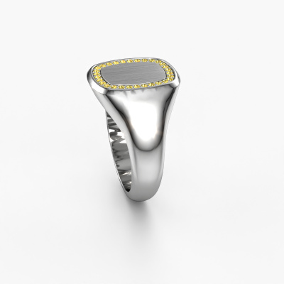 Dress to impress with this flat Floris Cushion 3 men's ring, because with the right ring you make a strong personal statement. This Floris Cushion 3 monogram men's ring is shown in platinum. If this doesn't suit your style, feel free to customize the precious metal to your liking. After all, you want a men's ring that matches your style. A ring that truly suits you. One saying: This is who I am!How do you like this modern platinum signet ring? Simply customize this Floris Cushion 3 signet ring, using our online tool. Subsequently, your personal monograms Floris Cushion 3 signet ring will be made by hand by our goldsmiths. Precious metals and gemstones can be customized to your liking. Do you have specific preferences which are unavailable in our online tool? Please feel free to contact us. We will customize your personal modern signet ring to your liking.