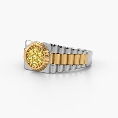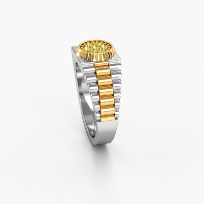 Everyone knows the design of this well-known watch brand. With two colours of white gold links, this solid 14 Carat white gold Nout men's ring, is perfectly suited for trendy, successful men. A man who wants to dress to impress with a striking men's ring with 2 mm yellow sapphire. Show them what you are made of!Our goldsmiths passionately create your customized men's ring to your liking with the utmost care. The white gold men's ring, as shown here, can be customized using our online tool. Feel free to ask our jewel designers for assistance if you want changes made which are unavailable in our online tool. We are happy to answer your questions.New jewellery designs are added to our online collection daily. Our team of passionate designers strive to create extraordinary and diverse designs. Have you seen a ring you like? Please feel free to contact us. Based on a good price/ quality ratio, we will make you an offer you can't refuse!By using our modern techniques, we can design and customize the finest quality jewels with the utmost care for you. Our rings are always priced 30 percent lower than other jewellers. We make rings to order, so we don't have to maintain a large stock. If you have a certain budget, we are more than happy to advice you accordingly.To make it easier for you, we offer a 30 day return policy. Check our terms and conditions.