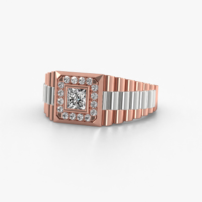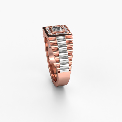 Everyone knows the design of this well-known watch brand. With two colours of rose gold links, this solid 14 Carat rose gold Zilan men's ring, is perfectly suited for trendy, successful men. A man who wants to dress to impress with a striking men's ring with 4 mm zirconia. Show them what you are made of!Customize your own special Zilan men's ring, which will then be created by our goldsmiths with great passion. Do you prefer a different option than is shown here in the rose gold Zilan men's ring? Then our online tools offers various options. Feel free to ask us for help if you are unable to succeed. We are happy to answer your questions!Our team of talented, passionate designers add new ring designs to our online collection daily. Our objective in doing so, is to be able to offer you a wide variety of jewels. Please feel free to request a quote if you have specific wishes for your ring. We guarantee to make you an offer you can't refuse.After receiving your order, our goldsmiths will start the creative process of making your Zilan ring. We don't keep stock. This is advantageous because these costs will not be passed on to you. Therefore, we can offer jewellery at exceptionally low prices.To make it easier for you, we offer a 30 day return policy. Check our terms and conditions.