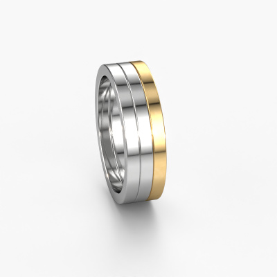 How do you like this wide modern wedding ring? This unique wedding ring is made in our own crafting studio. By using a unique combination of pure craftsmanship and the latest modern techniques, our goldsmiths are able to create the perfect 3 colour wedding ring for you in our own artisan studio. Resulting in an exquisite WH2102M wedding ring, a true representation of the love you share. This wide white gold men's wedding ring with flat profile has a width of ±0.24 in and has a shiny finish. You can choose the combination of precious metals of your preference in our online tool. Anything goes! It is wise to browse through the characteristics of each different precious metal. For example, gold and silver are softer metals. Carat is determined by the amount of added extra metals. If the goldsmith doesn't add a lot, carat is higher and the wedding ring will be softer. If he adds more metals, the jewel has a lower amount of carat. A softer precious metal can still be used for your modern wedding ring! If you prefer a precious metal which will last a lifetime, we recommend platinum. This is the most solid and durable metal our goldsmith uses.Be inspired by our designs, and adjust this wedding ring to your own personal taste: wider or smaller, shiny or matte? No problem! Even if you have ideas of your own for special wedding rings, our jewellery designers are lined up to help you design the ring of your dreams. don't hesitate to contact us!By combining our modern techniques with ancient crafting, we can design and customize the finest quality jewels with the utmost care for you at the best price. Our wedding rings are always priced 30% lower than those of other jewellers. We make wedding rings to order so we don't have to maintain a large stock.To make it easier for you, we offer a 30 day return policy. Check our terms and conditions.