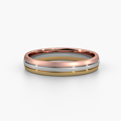 An extraordinary classic wedding ring! This WH0400M24AM wedding ring is a suitable match for any outfit. This men's wedding ring shown above is made in rose gold and finished mat. Due to its unique combination of the latest modern techniques and ancient craftsmanship, we are able to create a perfectly detailed ring in our own artisan studio. The width of this 14 Carat 3 colour wedding ring is approximately ±0.16x0.07 in. You can choose the combination of precious metals of your preference in our online tool. Anything goes! It is wise to browse through the characteristics of each different precious metal. For example, gold and silver are softer metals. Carat is determined by the amount of added extra metals. If the goldsmith doesn't add a lot, carat is higher and the wedding ring will be softer. If he adds more metals, the jewel has a lower amount of carat. A softer precious metal can still be used for your classic wedding ring! If you prefer a precious metal which will last a lifetime, we recommend platinum. This is the most solid and durable metal our goldsmith uses.By the way, you can be inspired by this wedding ring and have it further adjusted to your taste. Do you prefer a smaller band or a wider one? Do you prefer a shiny ring or a matte one? Anything is possible. Also, if you have an idea of your own for extraordinary wedding rings, or if you have seen a beautiful set somewhere else that you really like and would like to have adjusted to your personal taste: no problem! don't hesitate to contact us. Our designers will gladly discuss your possibilities with you!After receiving your order, our goldsmiths will start the creative process of making your wedding rings in our own crafting studio. We don't keep stock. This is advantageous because these costs will not be passed on to you. Therefore, we can offer the finest quality jewellery at exceptionally low prices.To make it easier for you, we offer a 30 day return policy. Check our terms and conditions.