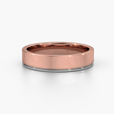 An extraordinary modern wedding ring! This WH0500M15AP wedding ring is a suitable match for any outfit. This men's wedding ring shown above is made in rose gold and finished shiny. Due to its unique combination of the latest modern techniques and ancient craftsmanship, we are able to create a perfectly detailed ring in our own artisan studio. The width of this 14 Carat 2 colour wedding ring is approximately ±0.20x0.07 in. The jewel designer, member of a specialized team, will make a graphic 3D design of your wedding ring. If it pleases you, you can also order a ring dummy so you can try it on and see your ring before creation. Subsequently, our goldsmith will create your unique wedding ring with great care in our own crafting studio. A meticulous job, because both creating as well as finishing your ring requires a keen eye. And that is what makes our craft special. Your unique wedding ring is the result of true passionate craftsmanship!Do you have special preferences regarding your wedding ring? For instance, a smaller or a wider band? Or perhaps a shiny or a matte ring? There are numerous variations possible. You can always discuss the possibilities with our jewellery designers. If you have certain wedding rings in mind, our designers will gladly help by drawing the rings of your dreams. Be sure to contact us!After receiving your order, our goldsmiths will start the creative process of making your wedding rings. We don't keep stock. This is advantageous because these costs will not be passed on to you. Therefore, our quality wedding rings are always priced 30 percent lower than those of other jewellers.To make it easier for you, we offer a 30 day return policy. Check our terms and conditions.