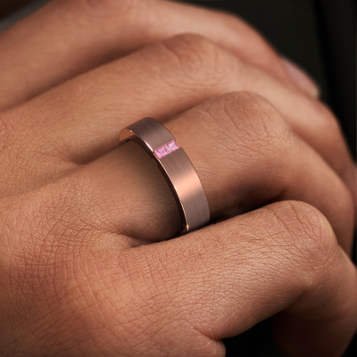 This design men's wedding ring is a melting pot of ancient craftsmanship, love, passion and the latest techniques. It requires a keen eye, patience and a skilful hand to create this rose gold wedding ring to perfection. And perfection is what our goldsmiths strive for! This way, you create an exclusive ring, which is customized to your liking and made by hand in our own artisan studio. This design WH2136M15E wedding ring is set with pink sapphire 2 mm, is ±0.20 in wide and has a matte finish. Choosing a wedding ring is not done on a whim. In the end, you want a ring that completely matches your style and preferences. A reflection of your love and relationship. A ring to last a lifetime. A symbol of all that unites you. Creating your dream ring is what gets us excited. This is artfully done by hand in our own crafting studio, so we can create your ring to perfection. The most rewarding job in the world!This wedding ring can also serve as a source of inspiration. Would you like the ring to have a matte or shiny finish (at no additional cost), or would you prefer it to be wider or narrower? Anything is possible. Because there are countless variations, we can’t show everything on our website. Do you have an idea for beautiful wedding rings, or have you seen a stunning set of wedding rings elsewhere? Feel free to contact us; our designers are ready to assist you.After receiving your order, our goldsmiths will start the creative process of making your wedding rings in our own crafting studio. We don't keep stock. This is advantageous because these costs will not be passed on to you. Therefore, we can offer the finest quality jewellery at exceptionally low prices.To make it easier for you, we offer a 30 day return policy. Check our terms and conditions.
