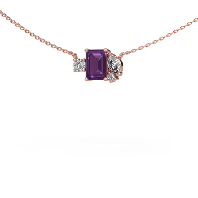 What a beautiful, contemporary pendant! A affordable pendant to finish your outfit. Buy it from DiamondsByMe. Our goldsmiths use the finest precious metals and gemstones to create our most extraordinary pieces of jewellery. Take this fantasy rose gold amethyst set Frauke EME pendant, for example. It was selected with great care, because your pendant should only be adorned with the finest amethysten. Our goldsmith will make your pendant by hand and will set the amethyst with great precision. Then it will be finished and polished to perfection, leaving you with a stunning pendant as a result!What could possibly be more beautiful than a personally designed fantasy pendant, handmade by yours truly? Please, feel free to customize each model by choosing different precious metals and gemstones. This makes your pendant truly unique. This pendant can be customized to your liking. It goes without saying that you can also ask us for help. We are more than willing to assist in designing your Frauke EME fantasy pendant. If you like but still have specific wishes concerning customizing your design, such as adding a gemstone which isn't mentioned in the list, feel free to contact us. We will gladly inform you on different options.Our team of talented, passionate designers add new pendant designs to our online collection daily. Our objective in doing so, is to be able to offer you a wide variety of jewels. Please feel free to request a quote if you have specific wishes for your pendant. We guarantee to make you an offer you can't refuse.By using a combination of the latest modern techniques, combined with ancient crafting, we can make all our pendants in our own studio. Each jewel is made to order. This is advantageous because we can offer you a price you won't find anywhere else.To make it easier for you, we offer a 30 day return policy. Check our terms and conditions.