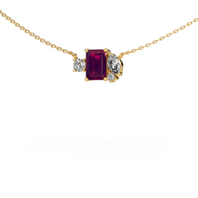 What a beautiful, contemporary pendant! A affordable pendant to finish your outfit. Buy it from DiamondsByMe. Our goldsmiths use the finest precious metals and gemstones to create our most extraordinary pieces of jewellery. Take this fantasy gold rhodolite set Frauke EME pendant, for example. It was selected with great care, because your pendant should only be adorned with the finest rhodolite. Our goldsmith will make your pendant by hand and will set the rhodolite with great precision. Then it will be finished and polished to perfection, leaving you with a stunning pendant as a result!What could possibly be more beautiful than a personally designed fantasy pendant, handmade by yours truly? Please, feel free to customize each model by choosing different precious metals and gemstones. This makes your pendant truly unique. This pendant can be customized to your liking. It goes without saying that you can also ask us for help. We are more than willing to assist in designing your Frauke EME fantasy pendant. If you like but still have specific wishes concerning customizing your design, such as adding a gemstone which isn't mentioned in the list, feel free to contact us. We will gladly inform you on different options.Our team of talented, passionate designers add new pendant designs to our online collection daily. Our objective in doing so, is to be able to offer you a wide variety of jewels. Please feel free to request a quote if you have specific wishes for your pendant. We guarantee to make you an offer you can't refuse.By using a combination of the latest modern techniques, combined with ancient crafting, we can make all our pendants in our own studio. Each jewel is made to order. This is advantageous because we can offer you a price you won't find anywhere else.To make it easier for you, we offer a 30 day return policy. Check our terms and conditions.