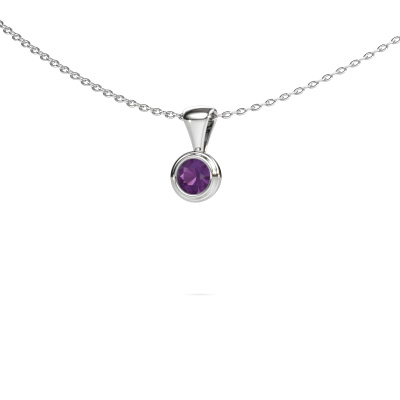 This modern pendant Lieke is set with a stunning round amethyst. In the past, gemstones were believed to have specific characteristics. Choose your gemstones based on these characteristics, or because they suit you, or because you simply like the colour. Whether you believe birthstones have certain characteristics or not, this solitaire pendant set with a carefully selected amethyst is truly eye-catching. A beautiful pendant to finish your outfit. You can also have the pendant set with your own or your children's birthstones, giving your pendant an extra meaning. Here the white gold pendant is set with 4 mm amethyst. A customized modern solitaire pendant is the perfect gift! New exquisite designs are added daily by our team of passionate goldsmiths. And each design can be customized. Simply customize the precious metals and the colour of gemstones which will be used, for example. This makes your design of the modern Lieke pendant truly unique!Our team of talented, passionate designers add new pendant designs to our online collection daily. Our objective in doing so, is to be able to offer you a wide variety of jewels. Please feel free to request a quote if you have specific wishes for your pendant. We guarantee to make you an offer you can't refuse.Because we design and deliver our own pendants, we can offer you a pendant at a price you won't find anywhere else. A pendant is made to order, which helps prevent excess supplies, so we can make you a great price offer. We understand it feels risky, buying your pendant online, but we will gladly assist in the designing process, taking your budget into consideration.To make it easier for you, we offer a 30 day return policy. Check our terms and conditions.