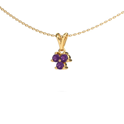 How would you describe your style? Do you like things slightly different? At the very least, this fine gold pendant Shirlee is unique, made especially by jewel designers. Our goldsmith will create your pendant to perfection by hand in our own artisan studio. This classic pendant is set with a amethyst. These amethysten are selected with great care because we believe your fine pendant should be adorned with nothing less than the finest gemstones available. Wouldn't you agree?What could possibly be more beautiful than a personally designed classic pendant, handmade by yours truly? Please, feel free to customize each model by choosing different precious metals and gemstones. This makes your pendant truly unique. This pendant can be customized to your liking. It goes without saying that you can also ask us for help. We are more than willing to assist in designing your Shirlee classic pendant. If you like but still have specific wishes concerning customizing your design, such as adding a gemstone which isn't mentioned in the list, feel free to contact us. We will gladly inform you on different options.Our team of talented, passionate designers add new pendant designs to our online collection daily. Our objective in doing so, is to be able to offer you a wide variety of jewels. Please feel free to request a quote if you have specific wishes for your pendant. We guarantee to make you an offer you can't refuse.Because we design and deliver our own pendants, we can offer you a pendant at a price you won't find anywhere else. A pendant is made to order, which helps prevent excess supplies, so we can make you a great price offer. We understand it feels risky, buying your pendant online, but we will gladly assist in the designing process, taking your budget into consideration.To make it easier for you, we offer a 30 day return policy. Check our terms and conditions.