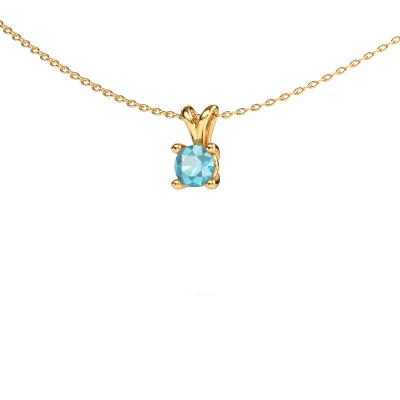 This solitaire pendant Sam round is both a classic and a trendy piece of jewellery. A solitaire pendant has an open prong setting, therefore, light reflects beautifully on the gemstone. Because the blue topaz is set high, this classic pendant is a stunning eye-catcher. We will create your graceful pendant by hand with the utmost care in our DiamondsByMe studio. For maximum shine, our goldsmith sets the blue topaz in the gold pendant with great care. This graceful pendant is set with round 5 mm blue topaz. What could possibly be more beautiful than a personally designed classic pendant, handmade by yours truly? Please, feel free to customize each model by choosing different precious metals and gemstones. This makes your pendant truly unique. This pendant can be customized to your liking. It goes without saying that you can also ask us for help. We are more than willing to assist in designing your Sam round classic pendant. If you like but still have specific wishes concerning customizing your design, such as adding a gemstone which isn't mentioned in the list, feel free to contact us. We will gladly inform you on different options.Our team of talented, passionate designers add new pendant designs to our online collection daily. Our objective in doing so, is to be able to offer you a wide variety of jewels. Please feel free to request a quote if you have specific wishes for your pendant. We guarantee to make you an offer you can't refuse.By using a combination of the latest modern techniques, combined with ancient crafting, we can make all our pendants in our own studio. Each jewel is made to order. This is advantageous because we can offer you a price you won't find anywhere else.To make it easier for you, we offer a 30 day return policy. Check our terms and conditions.