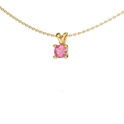 This solitaire pendant Sam round is both a classic and a trendy piece of jewellery. A solitaire pendant has an open prong setting, therefore, light reflects beautifully on the gemstone. Because the pink sapphire is set high, this classic pendant is a stunning eye-catcher. We will create your graceful pendant by hand with the utmost care in our DiamondsByMe studio. For maximum shine, our goldsmith sets the pink sapphire in the gold pendant with great care. This graceful pendant is set with round 5 mm pink sapphire. What could possibly be more beautiful than a personally designed classic pendant, handmade by yours truly? Please, feel free to customize each model by choosing different precious metals and gemstones. This makes your pendant truly unique. This pendant can be customized to your liking. It goes without saying that you can also ask us for help. We are more than willing to assist in designing your Sam round classic pendant. If you like but still have specific wishes concerning customizing your design, such as adding a gemstone which isn't mentioned in the list, feel free to contact us. We will gladly inform you on different options.Our team of talented, passionate designers add new pendant designs to our online collection daily. Our objective in doing so, is to be able to offer you a wide variety of jewels. Please feel free to request a quote if you have specific wishes for your pendant. We guarantee to make you an offer you can't refuse.By using a combination of the latest modern techniques, combined with ancient crafting, we can make all our pendants in our own studio. Each jewel is made to order. This is advantageous because we can offer you a price you won't find anywhere else.To make it easier for you, we offer a 30 day return policy. Check our terms and conditions.