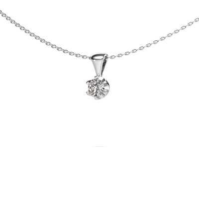 This solitaire necklace Fran is both a classic and a trendy piece of jewellery. A solitaire pendant has an open prong setting, therefore, light reflects beautifully on the gemstone. Because the diamond is set high, this classic necklace is a stunning eye-catcher. We will create your charming necklace by hand with the utmost care in our DiamondsByMe studio. For maximum shine, our goldsmith sets the diamond in the white gold necklace with great care. This charming necklace is set with round 0.25 crt diamond. A customized classic charming necklace is the perfect gift! New exquisite designs are added daily by our team of passionate goldsmiths. And each design can be customized. Simply customize the precious metals and the colour of gemstones which will be used, for example. This makes your design of the classic Fran necklace truly unique!