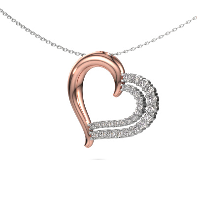 Let your heart speak with this gorgeous heart Kandace necklace. Made of rose gold and adorned with the most beautiful cz-stones. Keep your loved one close to your heart, and have your heart shaped necklace crafted by the DiamondsByMe goldsmiths. This heart shaped necklace is an exquisite gift for a loved one, or yourself! This pendant is made by hand by our goldsmith in our own DiamondsByMe studio. Due to a unique combination of the latest modern techniques and ancient craftsmanship we are able to create your heart shaped pendant to perfection. And that is what excites our goldsmiths, because only the finest piece of jewellery will do! We also carefully select our cz-stones and each zirconia of your heart shaped pendant is set with great care to create maximum shine. A uniquely handmade heart shaped pendant with a stunning zirconia is what you end up with. A customized classic special necklace is the perfect gift! New exquisite designs are added daily by our team of passionate goldsmiths. And each design can be customized. Simply customize the precious metals and the colour of gemstones which will be used, for example. This makes your design of the classic Kandace necklace truly unique!Our team of talented, passionate designers add new necklace designs to our online collection daily. Our objective in doing so, is to be able to offer you a wide variety of jewels. Please feel free to request a quote if you have specific wishes for your necklace. We guarantee to make you an offer you can't refuse.By using a combination of the latest modern techniques, combined with ancient crafting, we can make all our necklaces in our own studio. Each jewel is made to order. This is advantageous because we can offer you a price you won't find anywhere else.To make it easier for you, we offer a 30 day return policy. Check our terms and conditions.