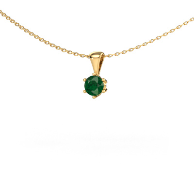 This solitaire necklace Fay is both a modern and a trendy piece of jewellery. A solitaire pendant has an open prong setting, therefore, light reflects beautifully on the gemstone. Because the emerald is set high, this modern necklace is a stunning eye-catcher. We will create your 6 prongs necklace by hand with the utmost care in our DiamondsByMe studio. For maximum shine, our goldsmith sets the emerald in the gold necklace with great care. This 6 prongs necklace is set with round 4.7 mm emerald. What could possibly be more beautiful than a personally designed modern necklace, handmade by yours truly? Please, feel free to customize each model by choosing different precious metals and gemstones. This makes your necklace truly unique. This necklace can be customized to your liking. It goes without saying that you can also ask us for help. We are more than willing to assist in designing your Fay modern necklace. If you like but still have specific wishes concerning customizing your design, such as adding a gemstone which isn't mentioned in the list, feel free to contact us. We will gladly inform you on different options.