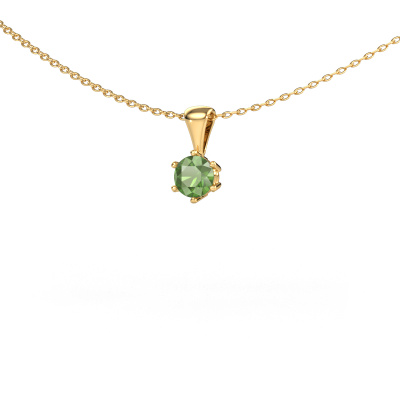 This solitaire necklace Fay is both a modern and a trendy piece of jewellery. A solitaire pendant has an open prong setting, therefore, light reflects beautifully on the gemstone. Because the tourmaline green is set high, this modern necklace is a stunning eye-catcher. We will create your 6 prongs necklace by hand with the utmost care in our DiamondsByMe studio. For maximum shine, our goldsmith sets the tourmaline green in the gold necklace with great care. This 6 prongs necklace is set with round 4.7 mm tourmaline green. What could possibly be more beautiful than a personally designed modern necklace, handmade by yours truly? Please, feel free to customize each model by choosing different precious metals and gemstones. This makes your necklace truly unique. This necklace can be customized to your liking. It goes without saying that you can also ask us for help. We are more than willing to assist in designing your Fay modern necklace. If you like but still have specific wishes concerning customizing your design, such as adding a gemstone which isn't mentioned in the list, feel free to contact us. We will gladly inform you on different options.