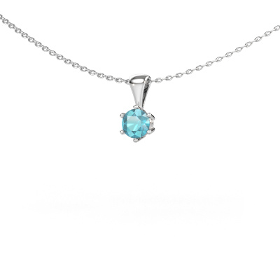 This solitaire necklace Fay is both a modern and a trendy piece of jewellery. A solitaire pendant has an open prong setting, therefore, light reflects beautifully on the gemstone. Because the blue topaz is set high, this modern necklace is a stunning eye-catcher. We will create your 6 prongs necklace by hand with the utmost care in our DiamondsByMe studio. For maximum shine, our goldsmith sets the blue topaz in the platinum necklace with great care. This 6 prongs necklace is set with round 4.7 mm blue topaz. What could possibly be more beautiful than a personally designed modern necklace, handmade by yours truly? Please, feel free to customize each model by choosing different precious metals and gemstones. This makes your necklace truly unique. This necklace can be customized to your liking. It goes without saying that you can also ask us for help. We are more than willing to assist in designing your Fay modern necklace. If you like but still have specific wishes concerning customizing your design, such as adding a gemstone which isn't mentioned in the list, feel free to contact us. We will gladly inform you on different options.